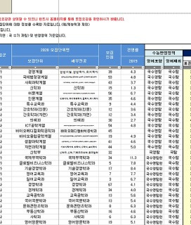 2020학년도 주요대학 적정 누백 배치표 짤방 일베저장소