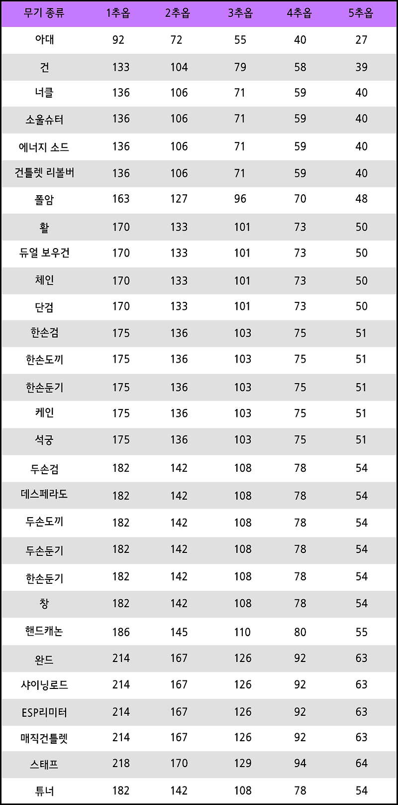 메이플 팁 무기 추옵표 정리 무기류 튜너 추가