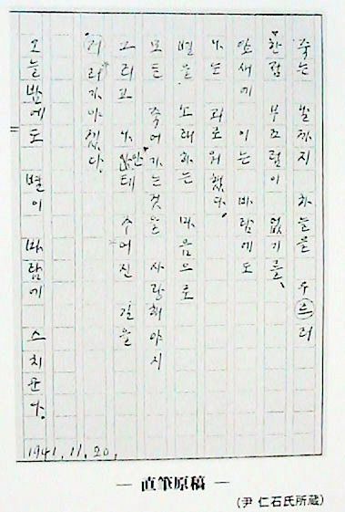 스물일곱 윤동주 후쿠오카 감옥에서 지다 ㅍㅍㅅㅅ
