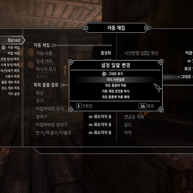 스카이림 퍽 초기화 모드 능력치 재설정 초기화 리셋