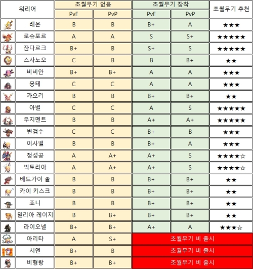 크루세이더 퀘스트 용사등급표 위자드 17 01 29 버전 한정용사 추가