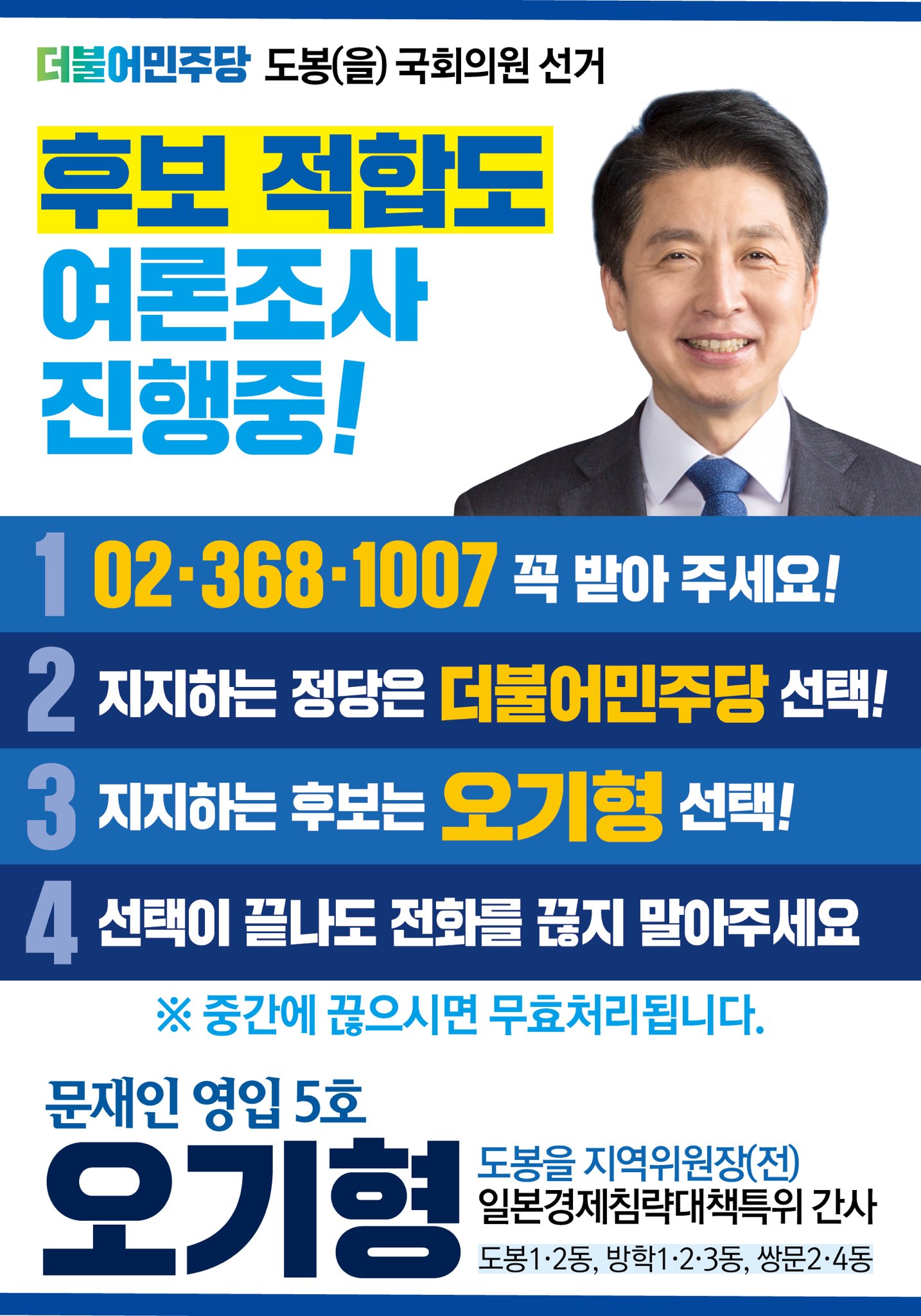 오기형 더불어민주당 On Twitter 현재 02 368 1007 번호로 더불어민주당 도봉 을 국회의원 후보적합도조사가 진행중입니다 당당한 도봉을 만드는 더 큰 힘 오기형을 선택해 주십시오 감사합니다